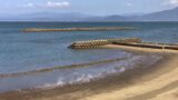桜島を望む海沿いの防波堤と道路の風景 観光